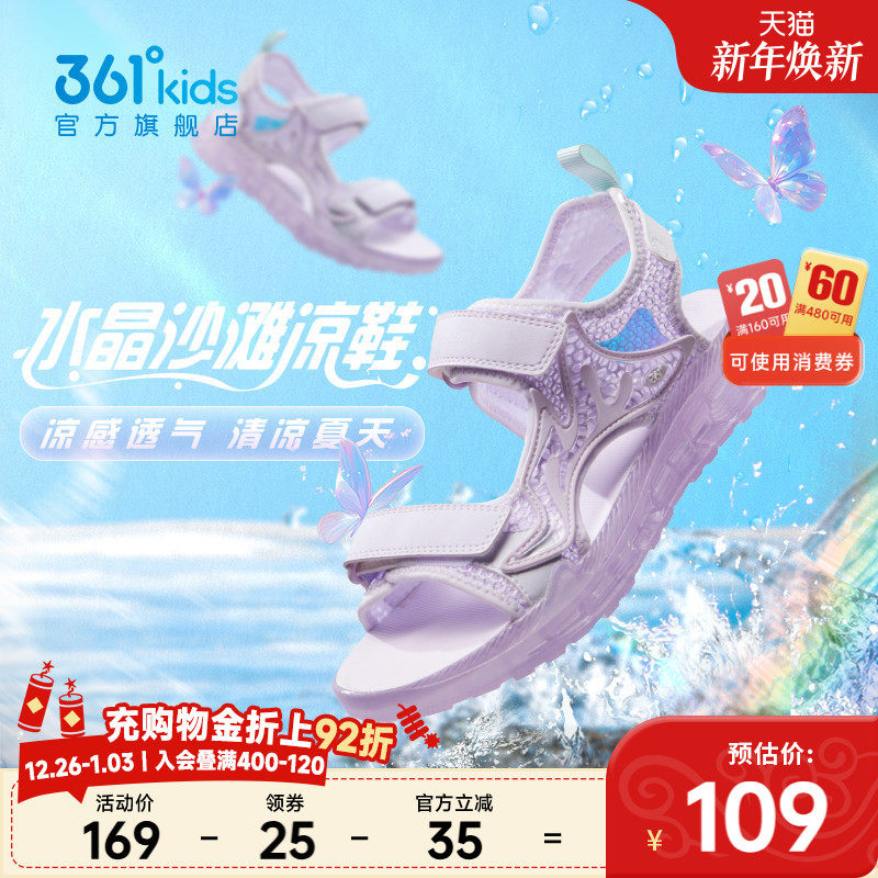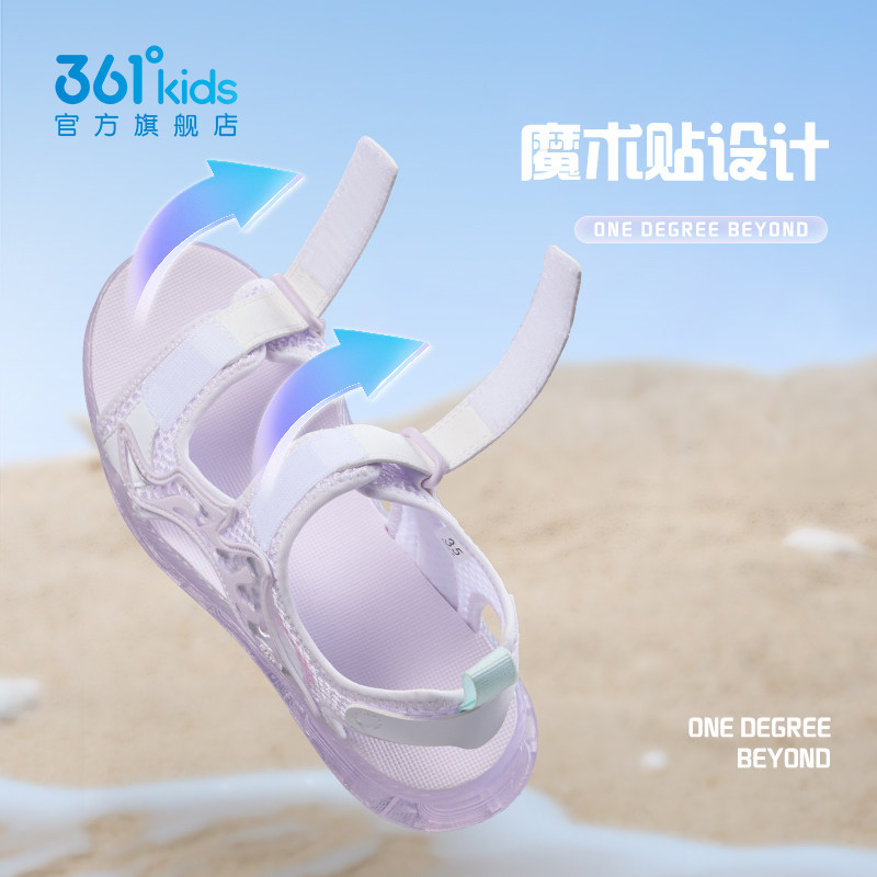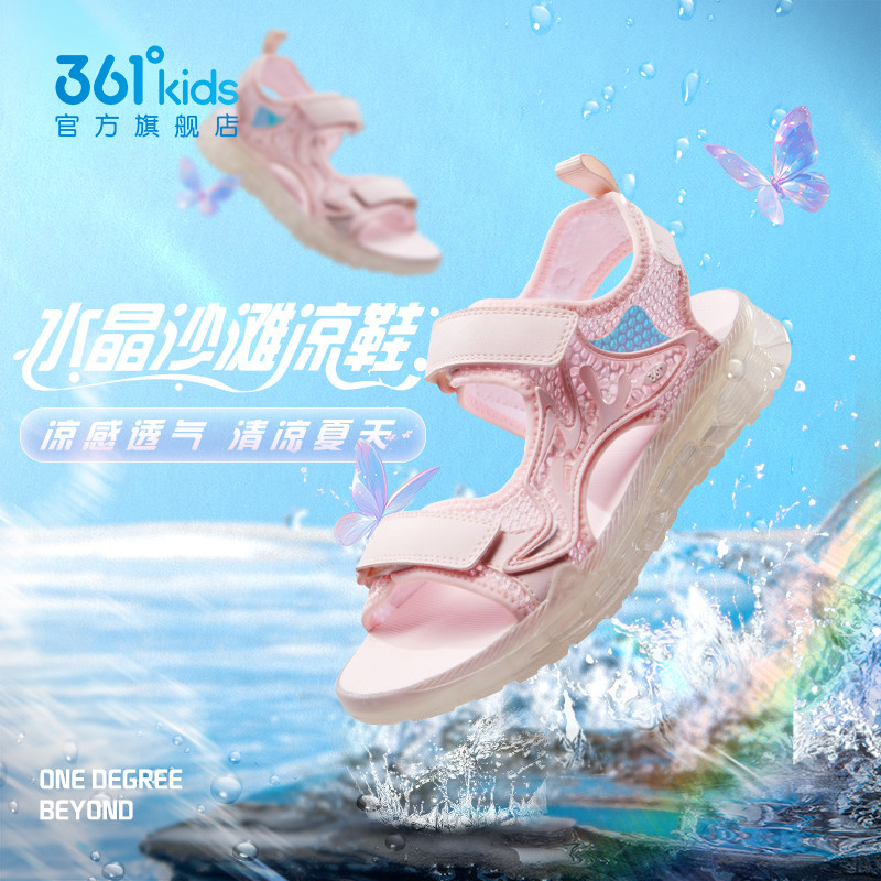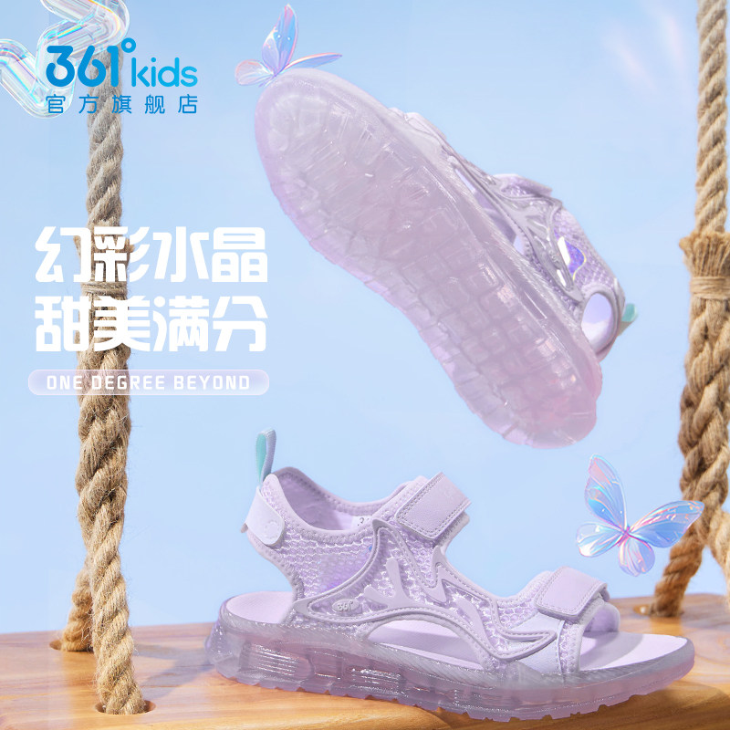 361°童鞋女童露趾凉鞋儿童水晶鞋2025年夏季新款中大童鞋魔术贴