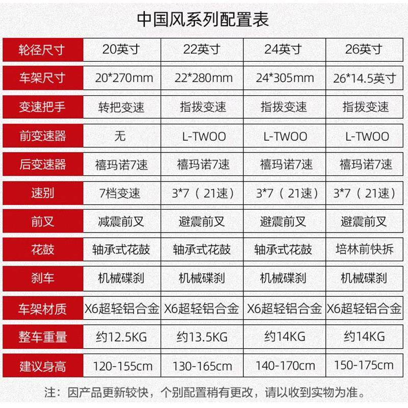 喜德盛XDS儿童山地碟刹自行车20/22/24寸变速小学生青少年中国风
