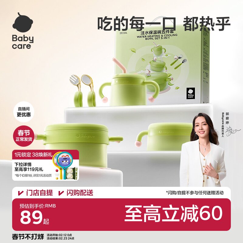babycare宝宝辅食碗婴儿专用米粉注水保恒温不锈钢儿童餐具礼盒
