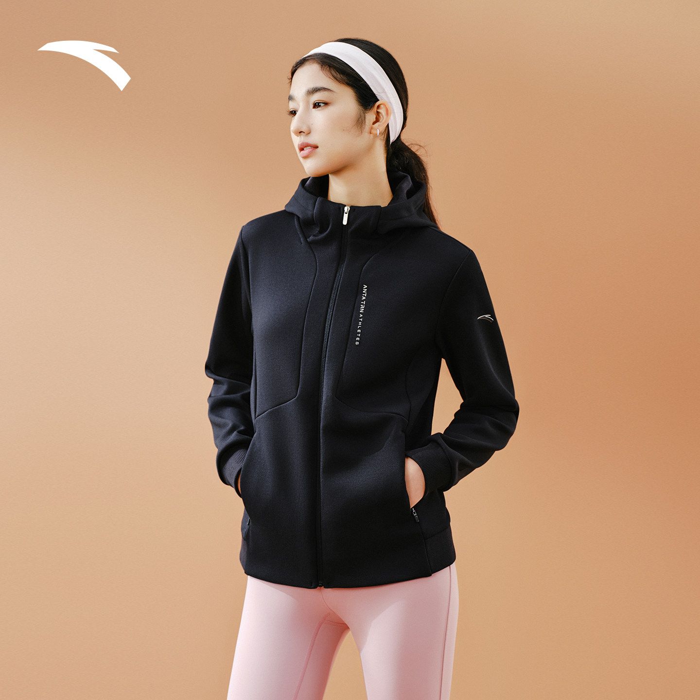 安踏易打理外套丨女子保暖开衫修身训练连帽运动服上衣162547711N