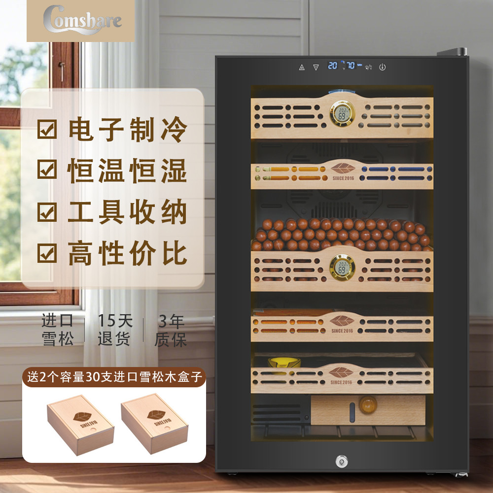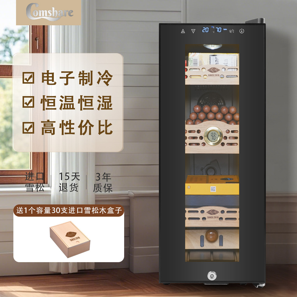 Comshaer雪茄柜12L桌面恒温保湿柜办公室小型迷你电子冷藏柜带锁