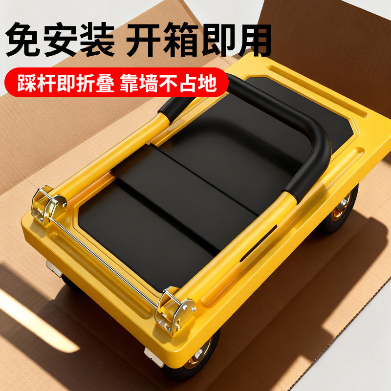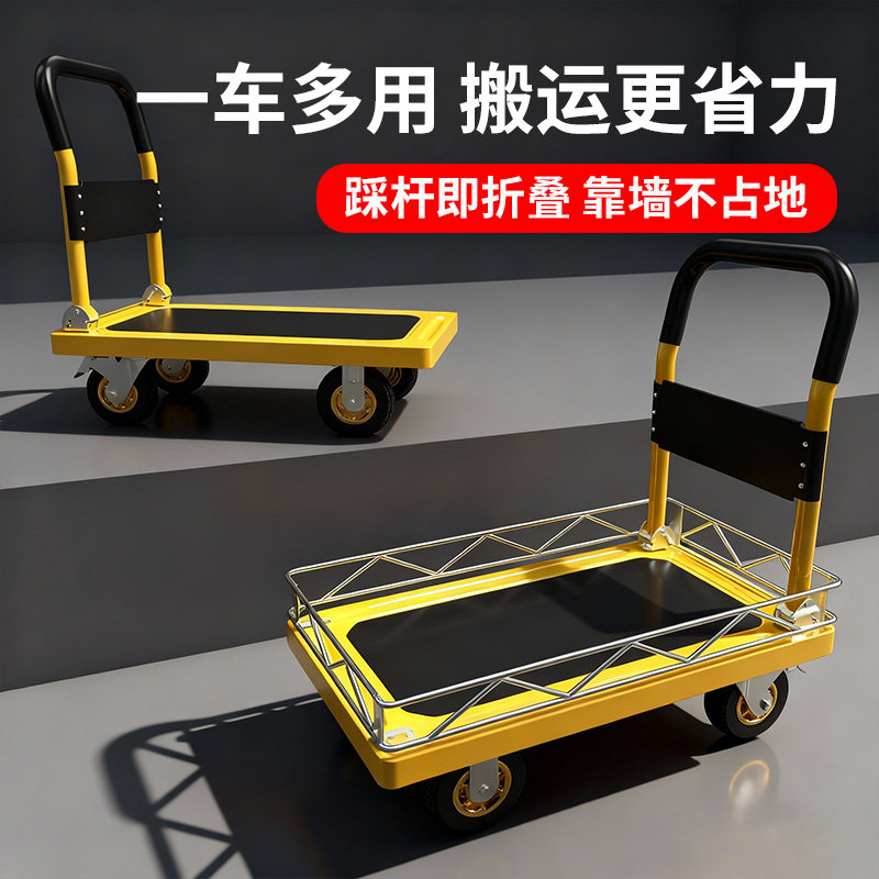 小推车拉货可折叠手推车平板车搬运拖车取快递手拉车加厚钢板拖车