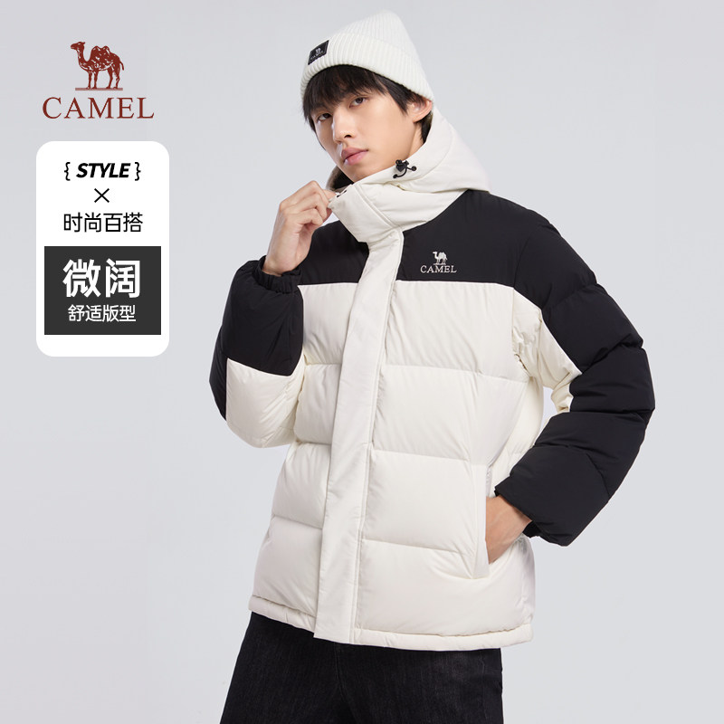 骆驼男装短款羽绒服男款三防秋冬白鸭绒加厚保暖百搭时尚连帽外套