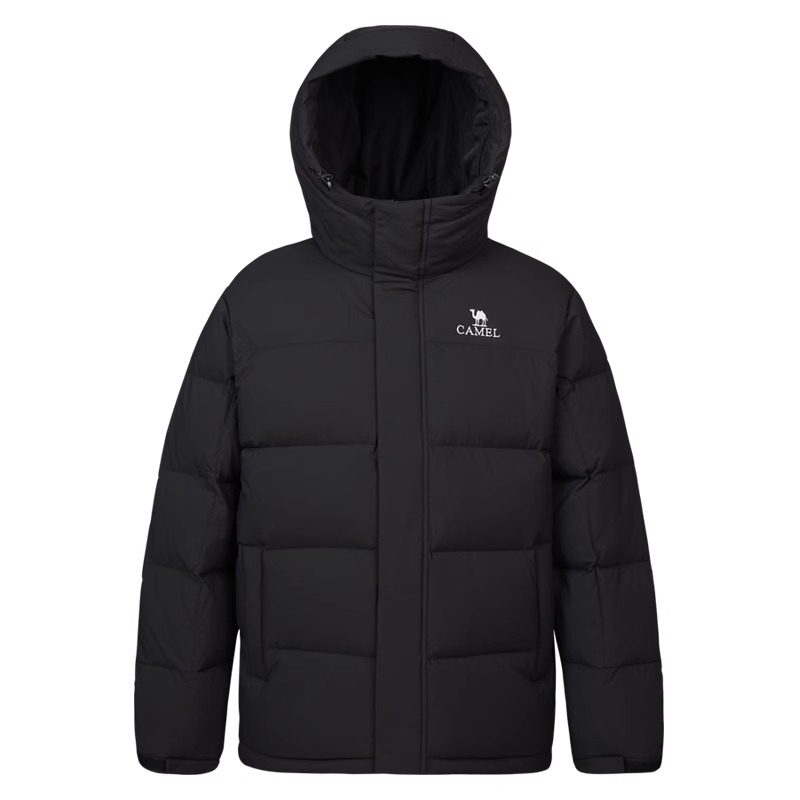 骆驼男装秋冬黑色加厚保暖鸭绒短款面包服男女同款防水羽绒服外套