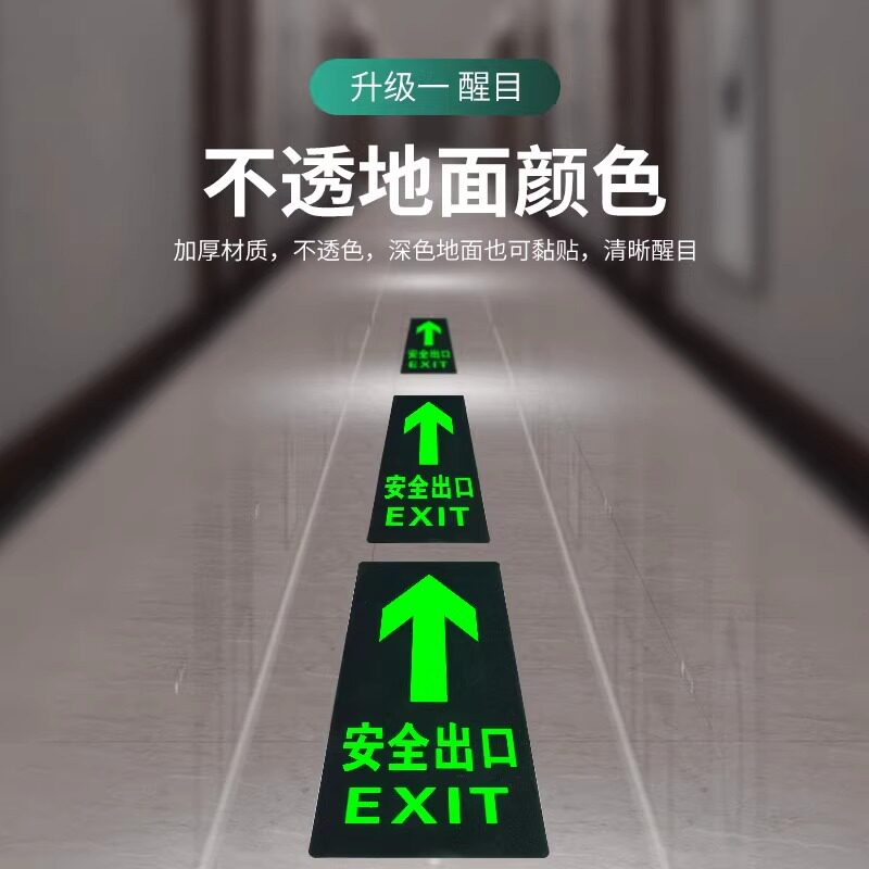 安全出口指示牌夜光荧光贴楼梯间箭头指示牌疏散紧急逃生消防标识标牌自发光高级反光贴小心台阶地滑警示标识