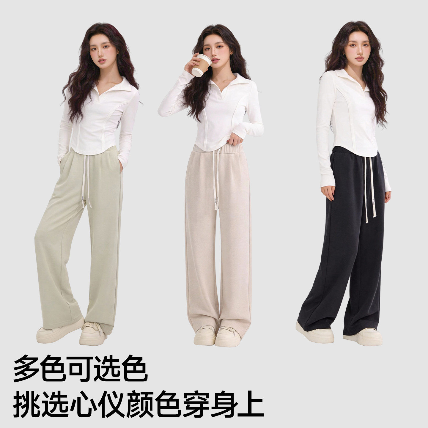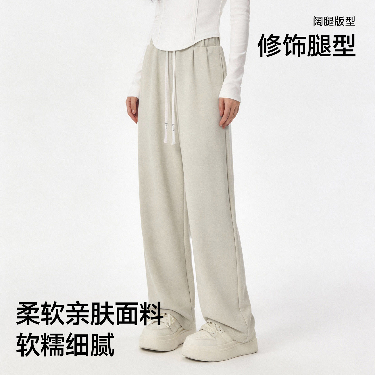 糯米裤女羊羔绒垂坠感软糯加绒加厚秋冬韩系慵懒松弛感阔腿裤TB