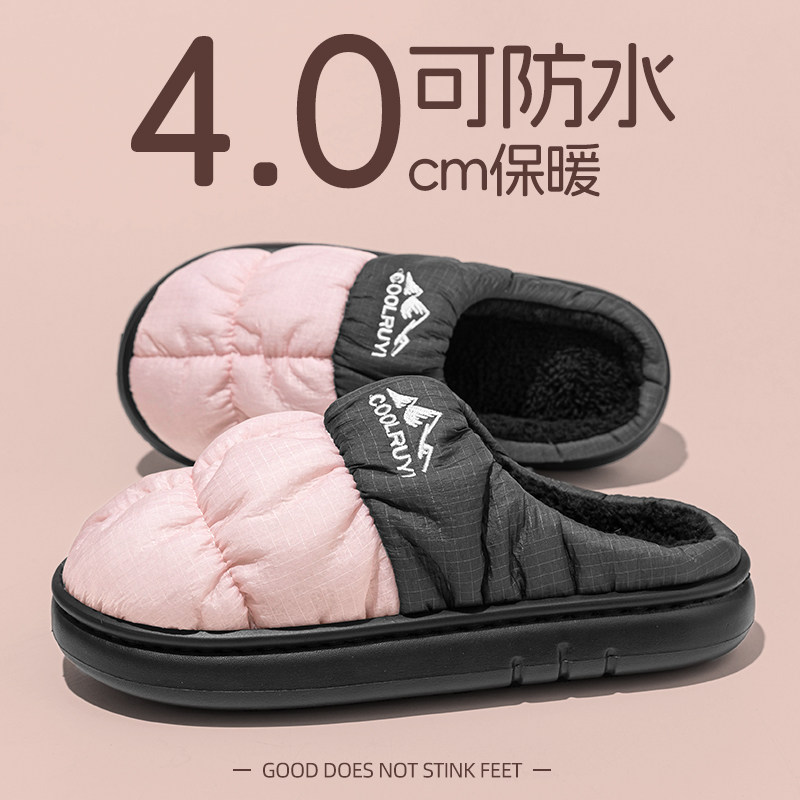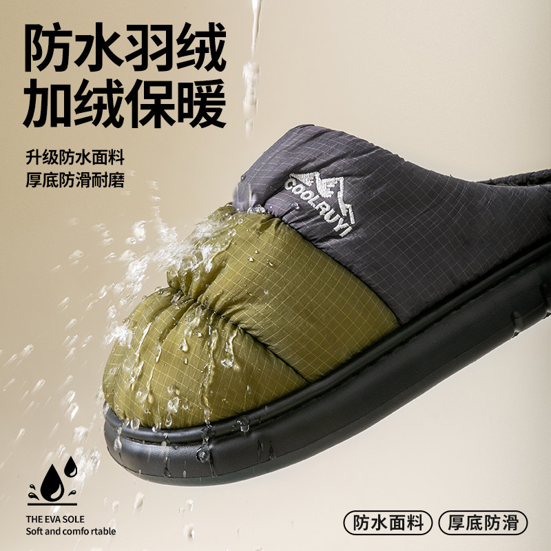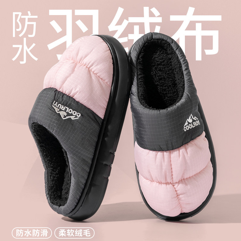 踩屎感防水棉拖鞋女冬季室内居家用保暖厚底羽绒拖鞋冬男款可外穿