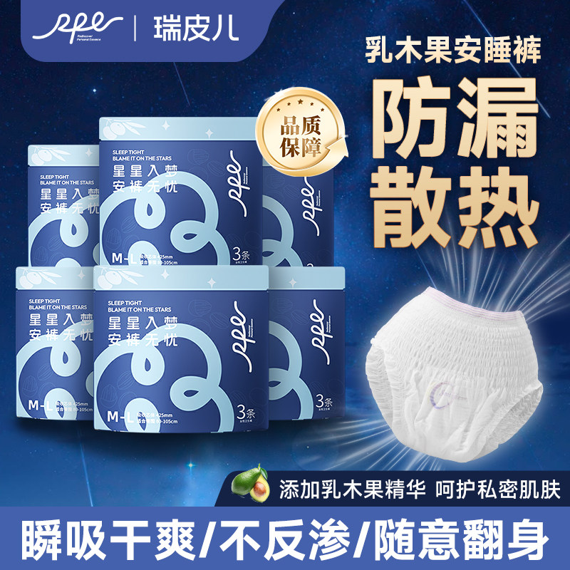 瑞皮儿安睡裤乳木果夜安裤经期卫生裤防侧漏夜用防漏透气安心舒适