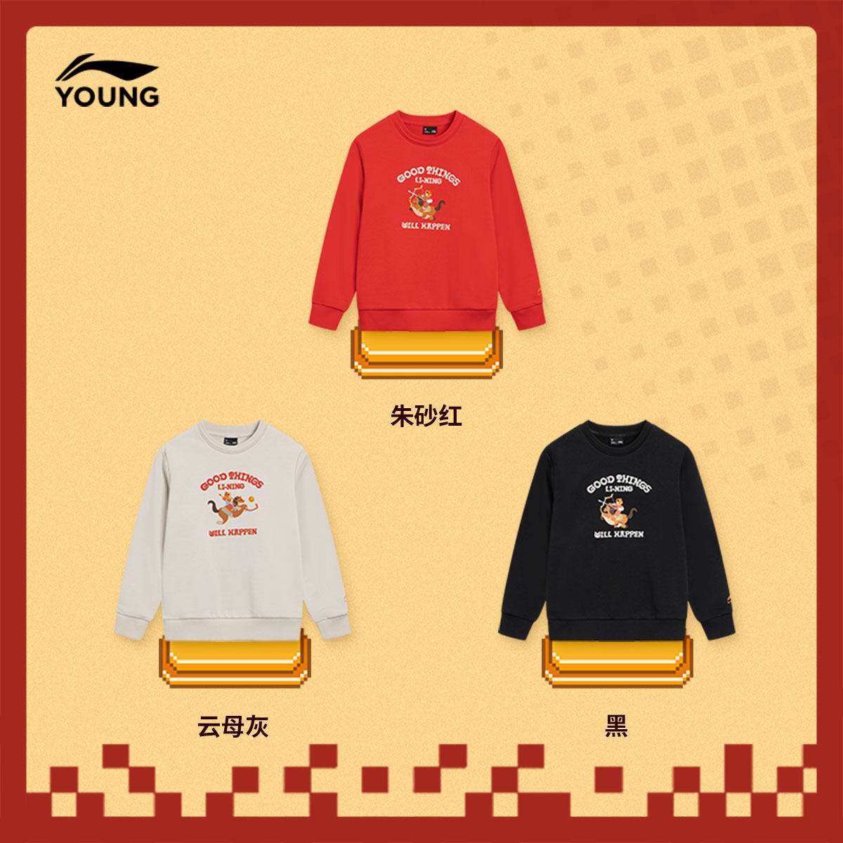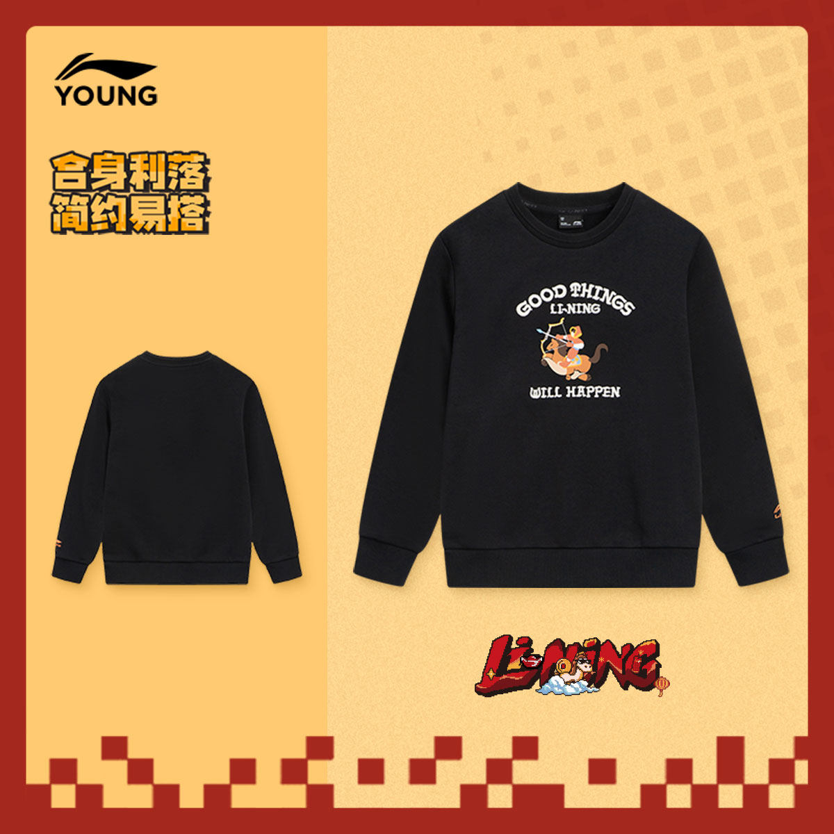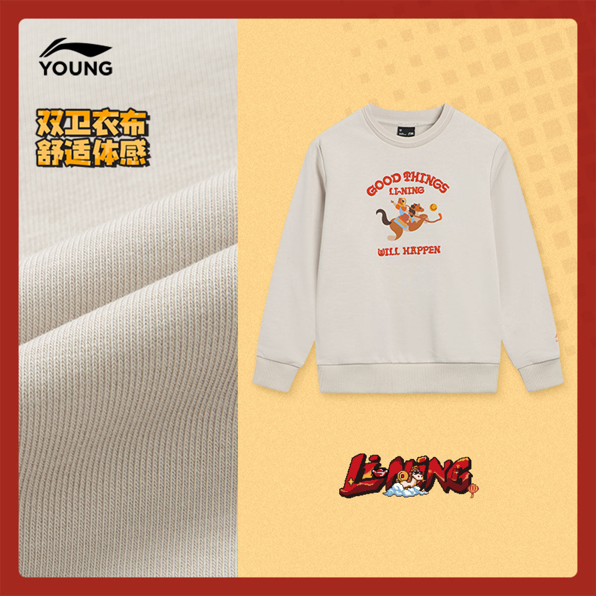 李宁童装卫衣男大童运动生活系列套头衫青少年春夏休闲针织童装