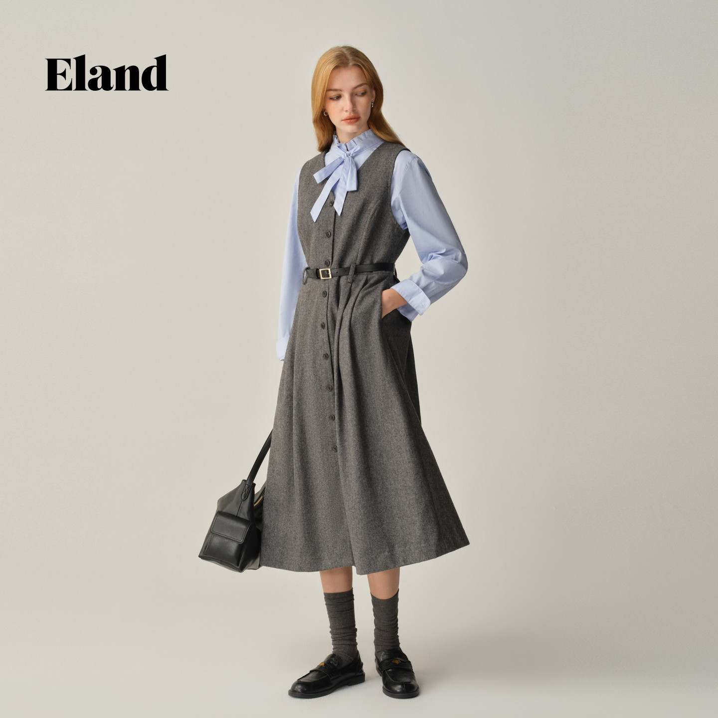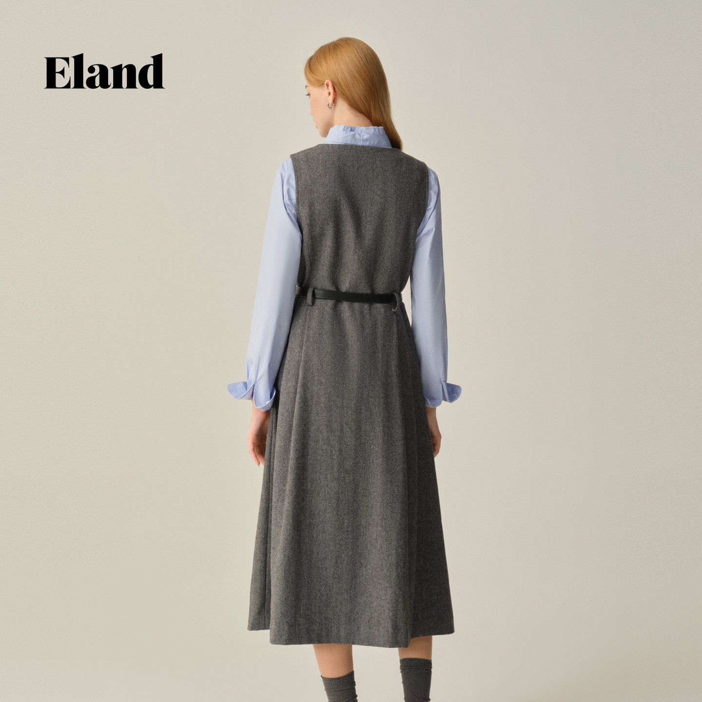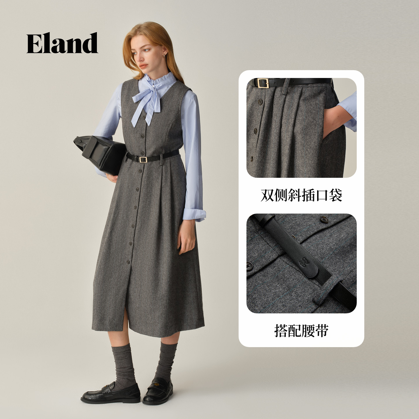 【绵羊毛】Eland衣恋连衣裙女气质V领无袖收腰长裙2025冬季新款