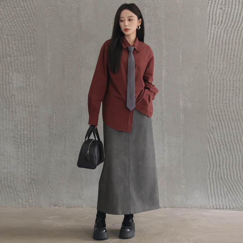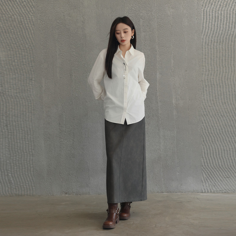 AIRIQI冬季新款休闲极简通勤风全棉宽松显瘦落肩衬衫女AY44CS222