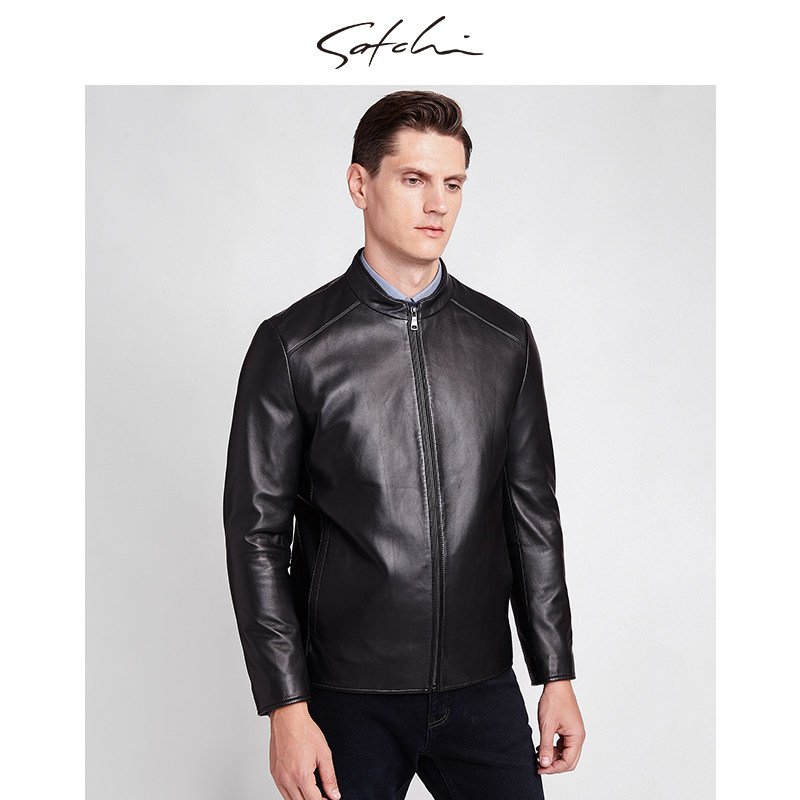 SATCHI沙驰男装男士真皮皮衣冬季新款商务绵羊皮夹克外套男厚