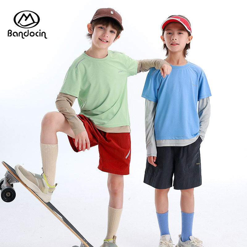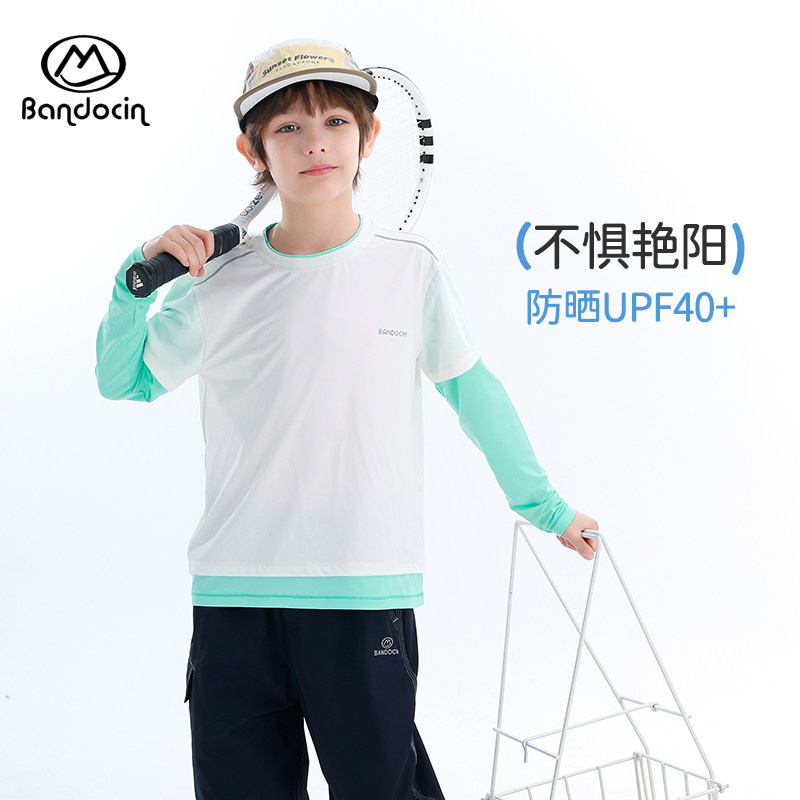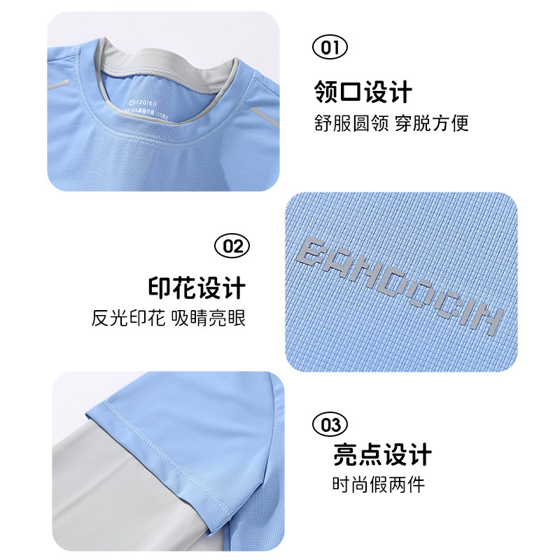 【舒适防晒】半度闲男童假两件防晒T恤长袖洋气薄款儿童夏装上衣T