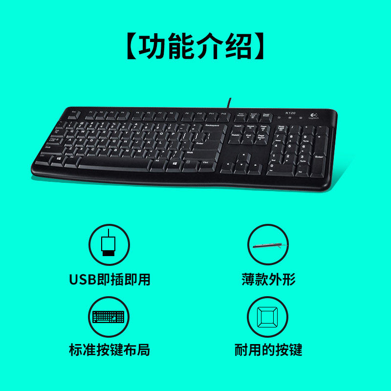 罗技K120有线键盘USB电脑家用防水机械手感游戏拆包商务办公套装