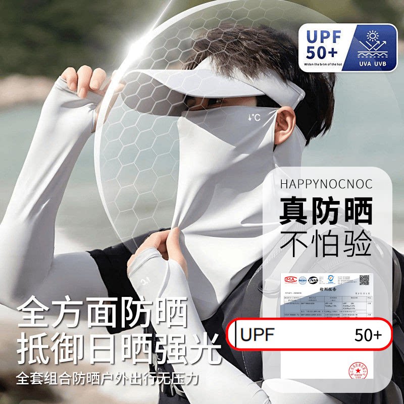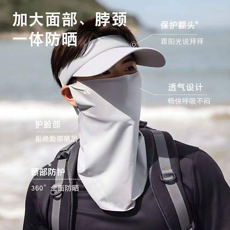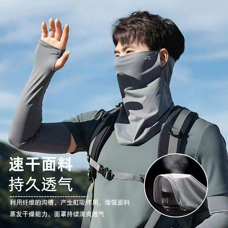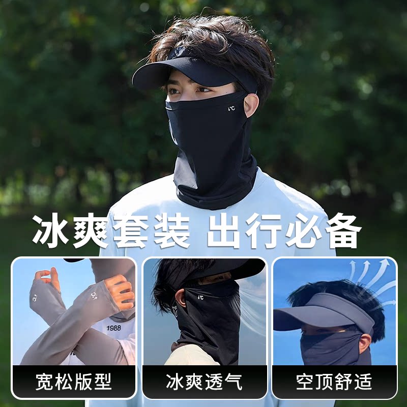 冰丝骑行防晒面罩防紫外线遮全脸面纱男女款冰袖防晒帽套装遮阳