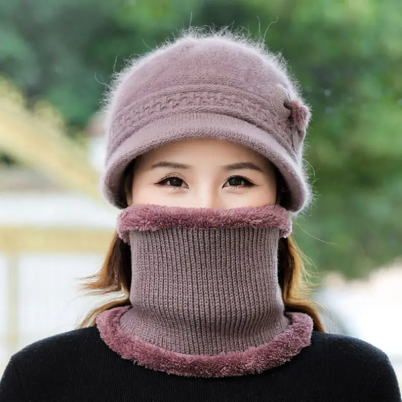 中老年妈妈帽子兔毛加厚保暖防寒奶奶帽女士秋冬季毛线帽针织盆帽