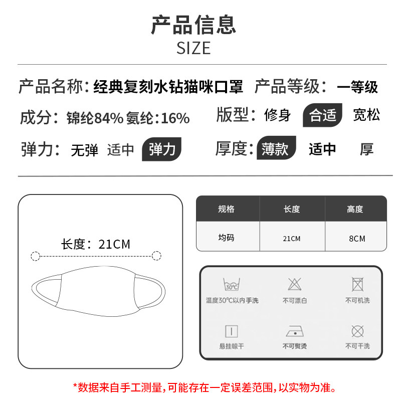 HOII/后益明星同款水钻猫咪防晒口罩透气面罩防灰尘骑行紫外线女