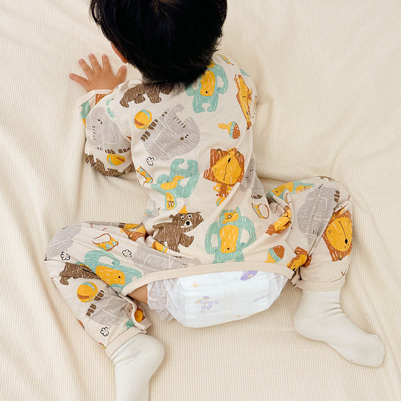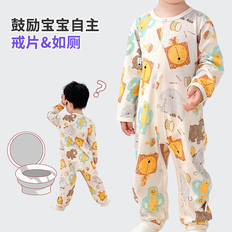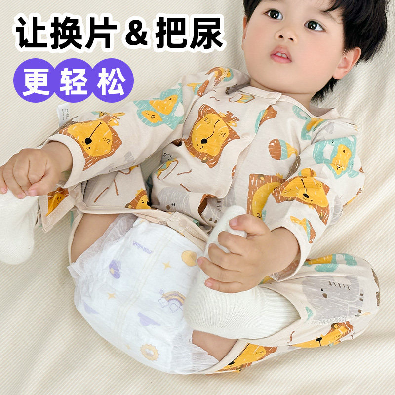 婴幼儿连体衣暖气房纯棉薄款漏屁股打底衣男女宝宝长袖开裆裤衣服