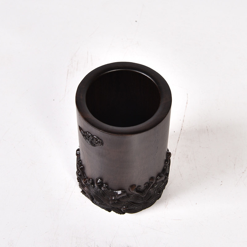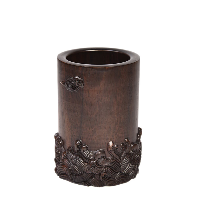 琴书侣黑檀木雕笔筒工艺品摆件实木质明式毛笔海浪笔筒办公桌摆件
