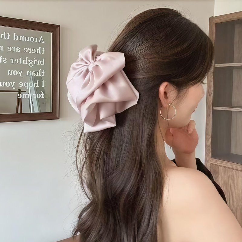 黑色缎面蝴蝶结头饰发夹女2025新款高级感半扎发抓夹后脑勺马尾夹