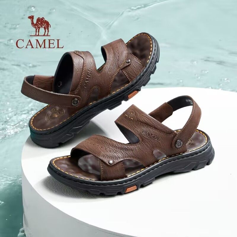 骆驼男鞋2025夏季新款耐磨防滑透气舒适软底爸爸真皮休闲商务凉鞋