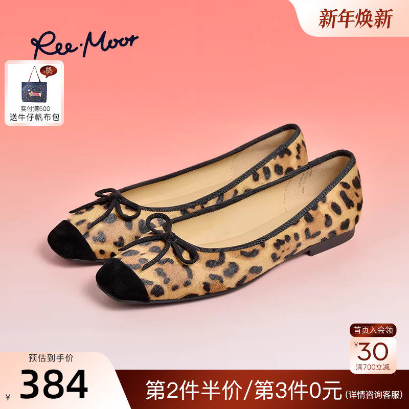 REEMOOR睿慕2025秋季新款时尚豹纹浅口单鞋舒适软底平底鞋方头女