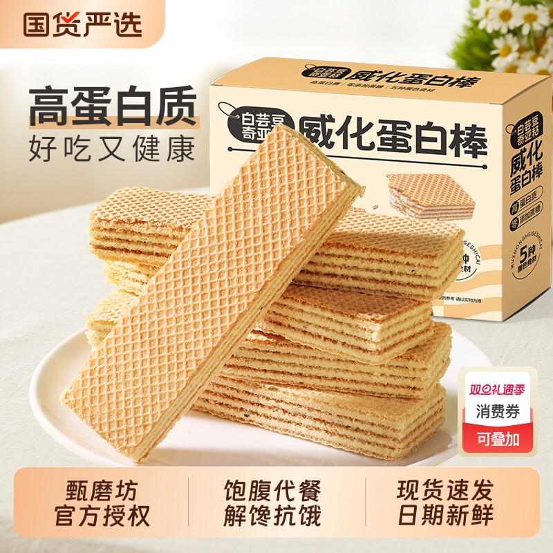甄磨坊白云豆奇亚籽威化蛋白棒代餐能量饼干解馋小零食旗舰店充饥