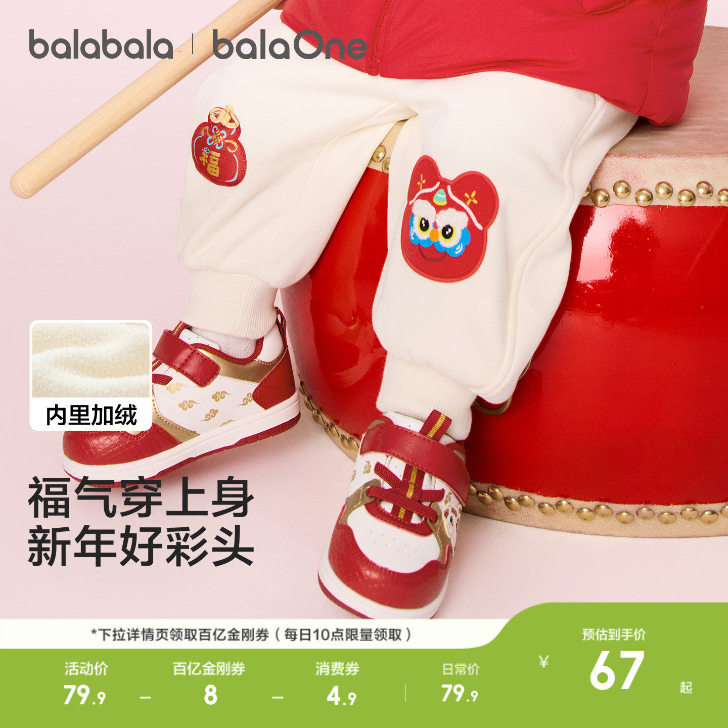 巴拉巴拉童装儿童加绒长裤子男童2026冬装新款红色拜年服女童宝宝