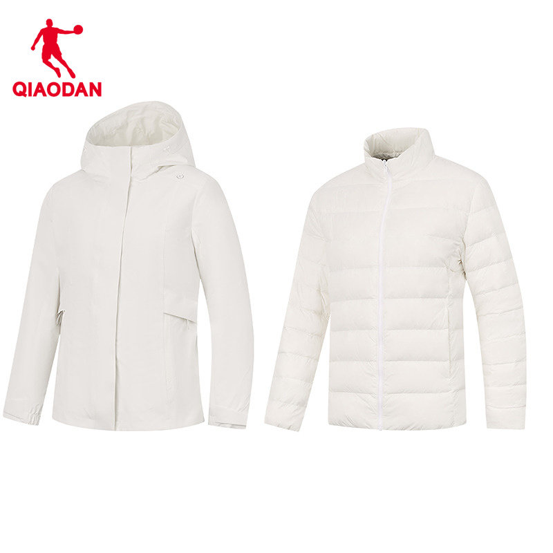 乔丹三合一排骨羽绒风衣商场同款2025女轻薄防风防泼水连帽梭织