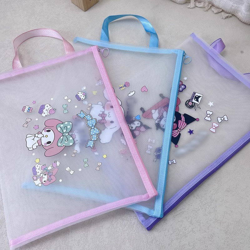 手提学习书本分类文件袋拉链作业袋小学生透明网纱手提袋文具书袋试卷收纳文具袋幼儿园袋子拉链分类袋