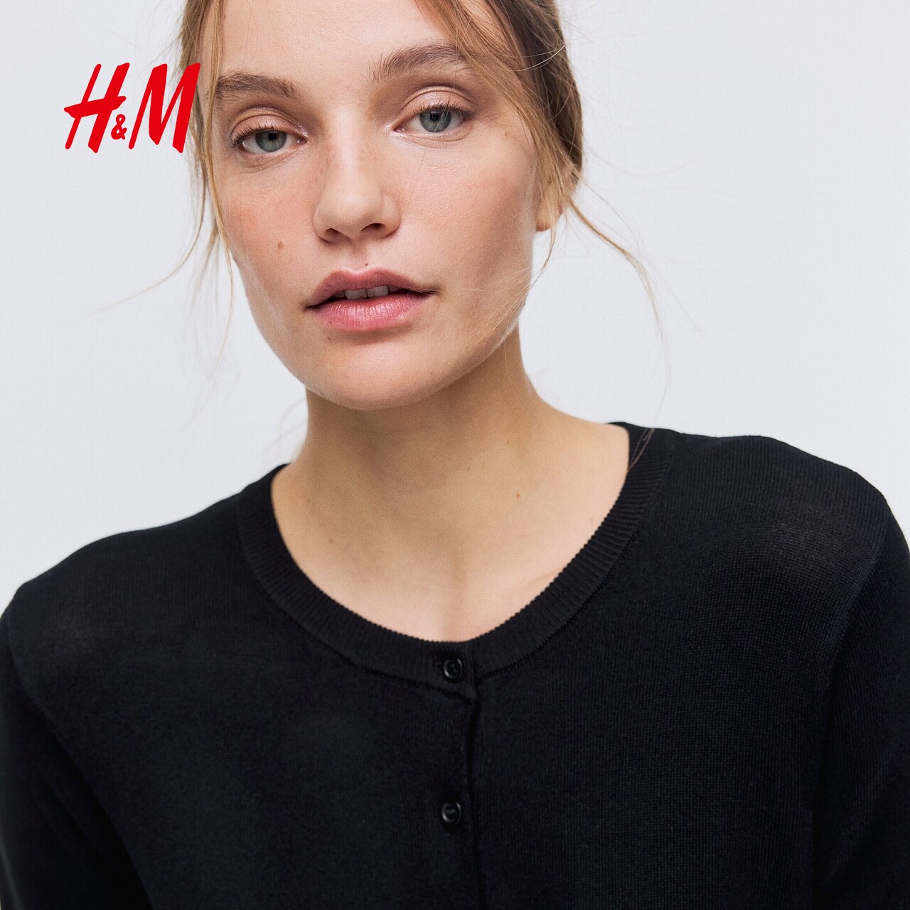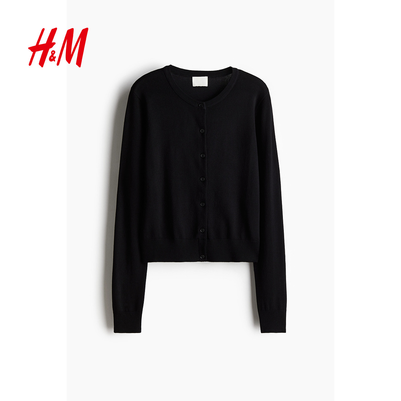 HM女装毛针织衫冬季慵懒舒适打底衫短款开衫薄款外套0579541