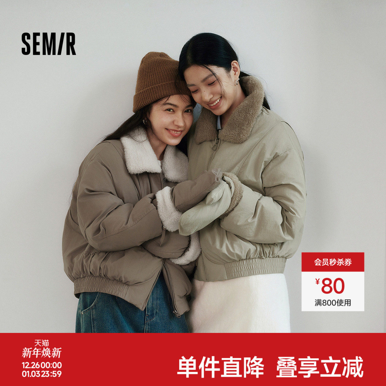 森马棉服女冬毛绒翻领手套宽松分割肌理2025新款时尚复古休闲棉衣