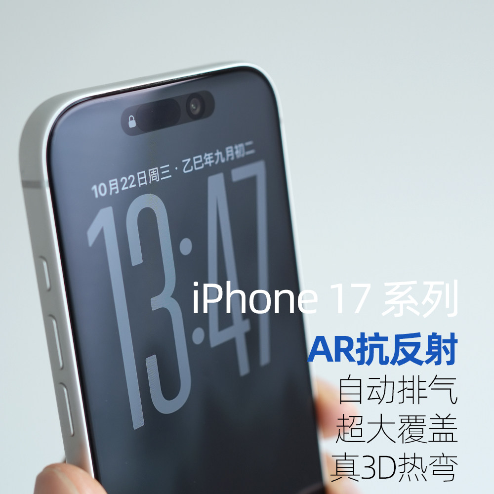 阿慕良品MESAP【自动排气】3D热弯AR增透抗反射大覆盖适用于iPhone17ProMax 高端玻璃膜iPhone17数字版标准版