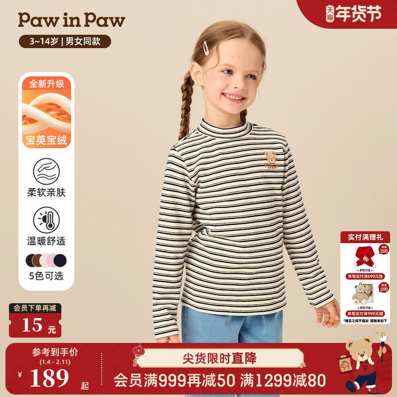 【宝英宝绒】PawinPaw卡通小熊童装25年秋冬新款男女童打底衫T恤