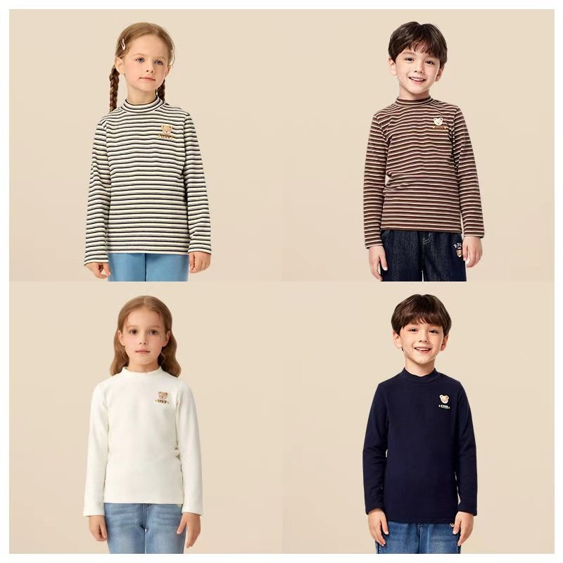 [发热]齐齐熊男童打底衫冬款宝宝条纹儿童半高领T恤童装女童纯色