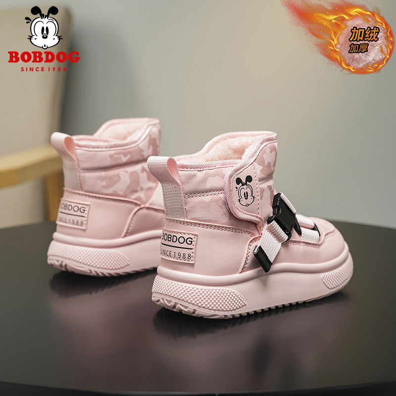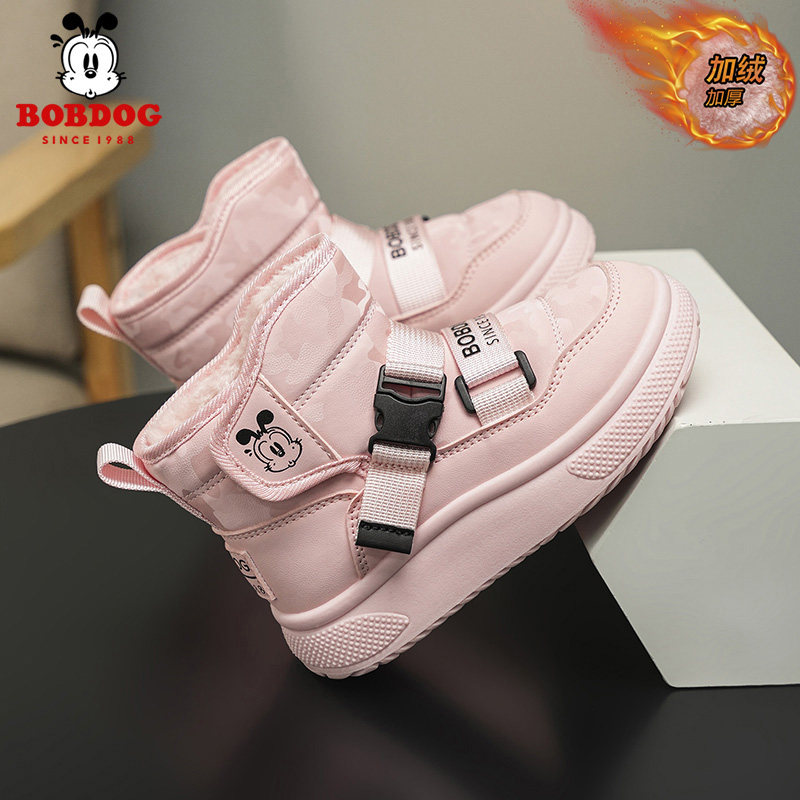 巴布豆儿童雪地靴女童防水大棉鞋2025冬季新款男童加绒保暖大棉靴