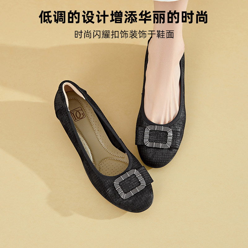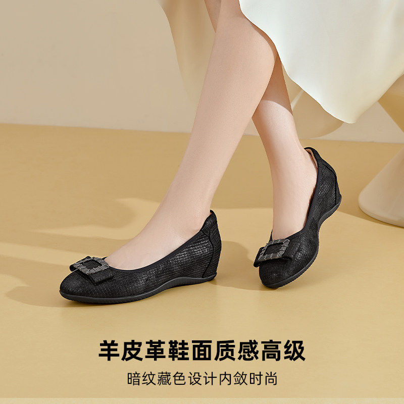【 羊皮】真皮单鞋女春2025新款内增高坡跟女鞋舒适百搭妈妈皮鞋