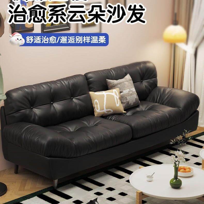 黑色云朵布艺沙发客厅新款小户型简约双人出租房卧室直排小沙发