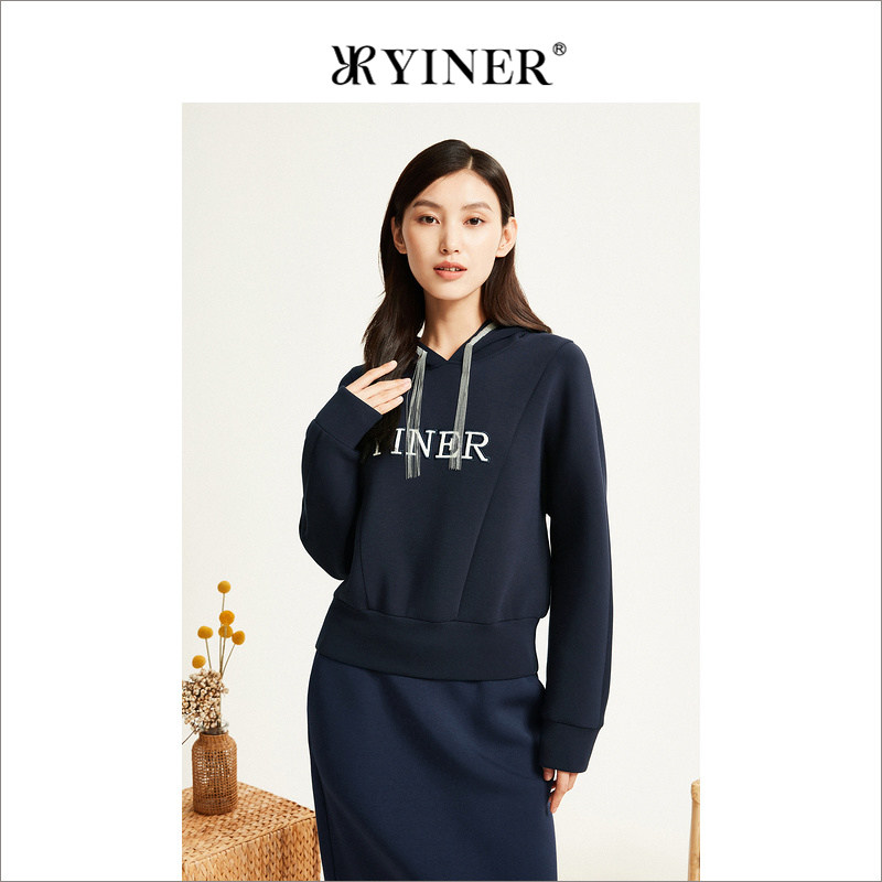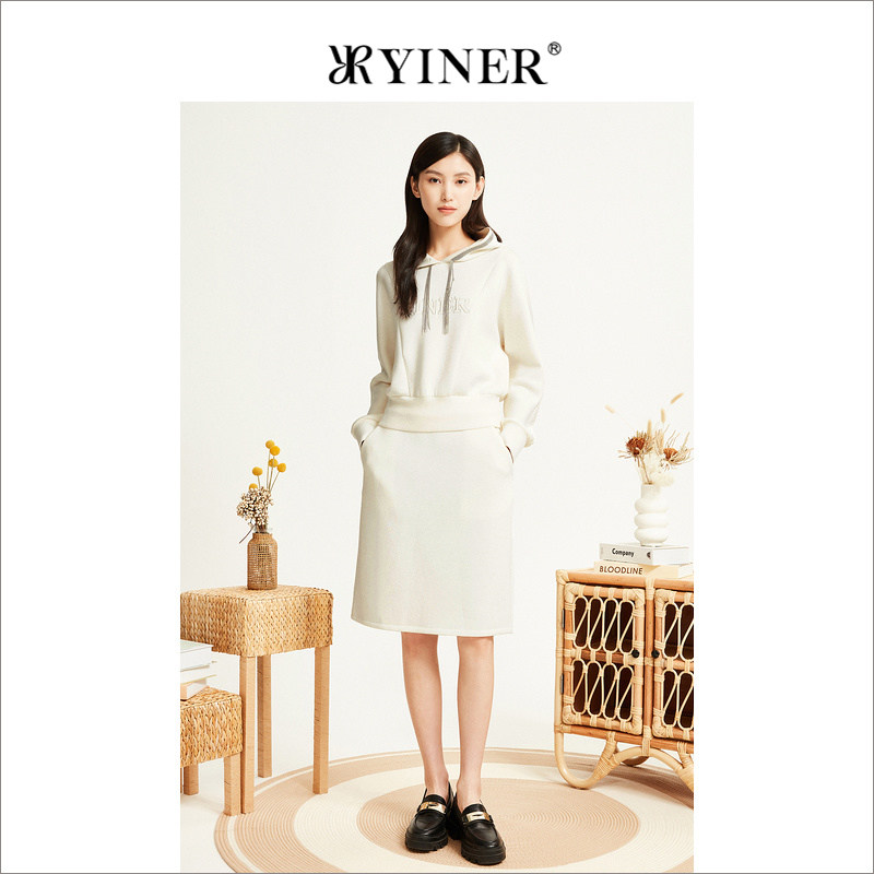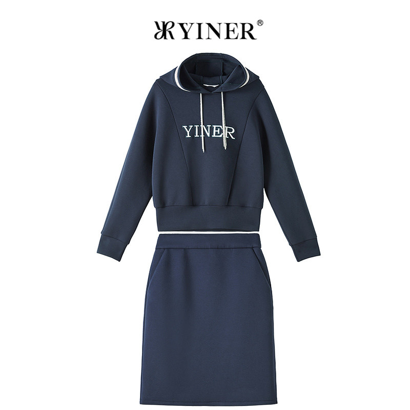 YINER音儿专选女装秋季连帽字母logo卫衣套装半身裙两件套