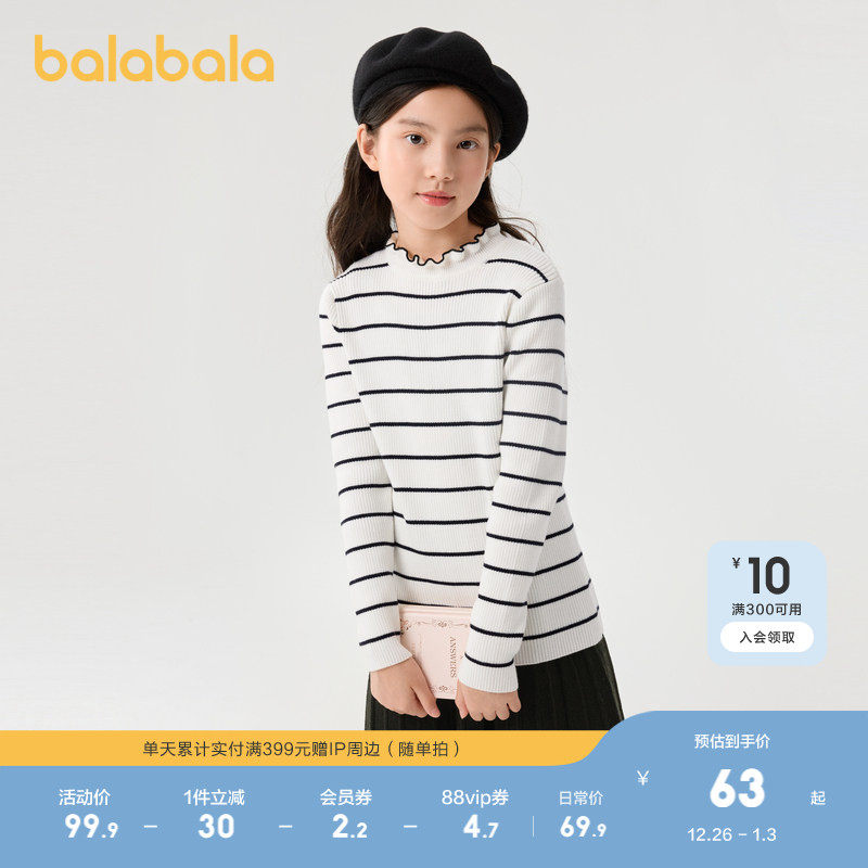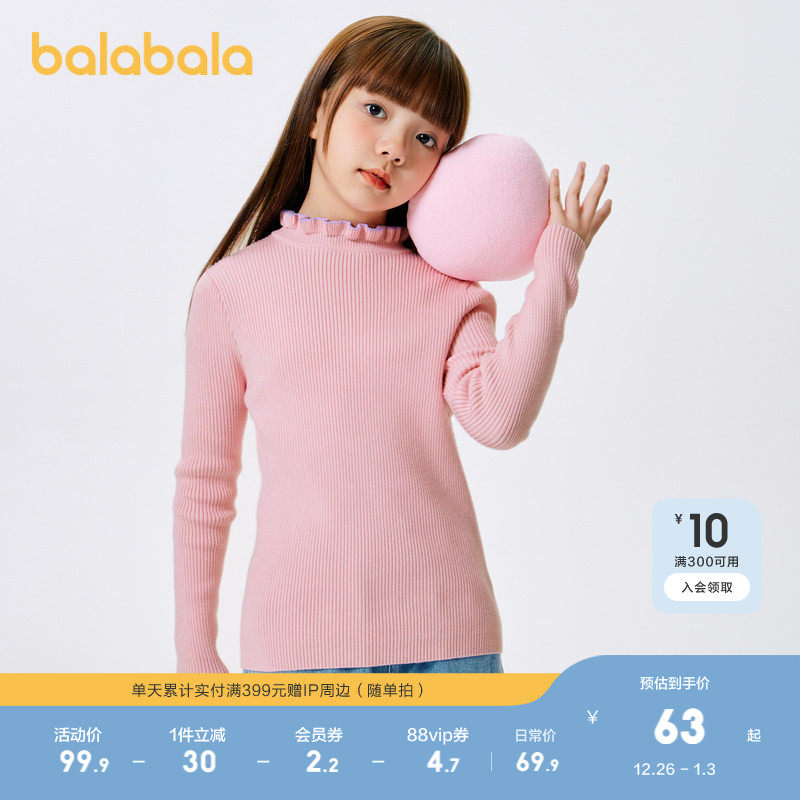 巴拉巴拉儿童毛衣女童秋装针织衫小童中大童木耳边可爱甜美风简约