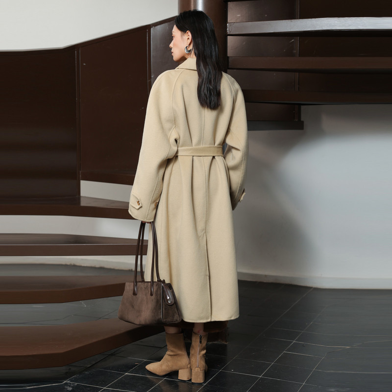 反季双面羊毛大衣女中长款2025新款西装领双排扣宽松显瘦毛呢外套
