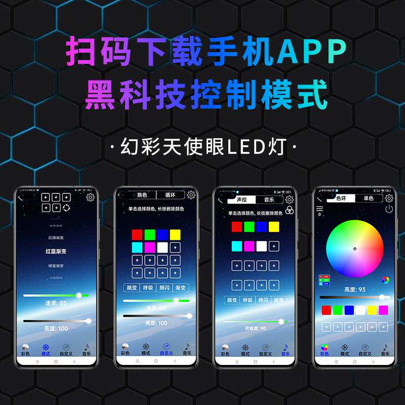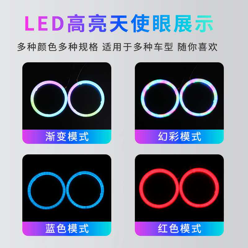汽车通用改装幻彩LED天使眼光圈APP手机控制幻彩日行灯大灯光光圈