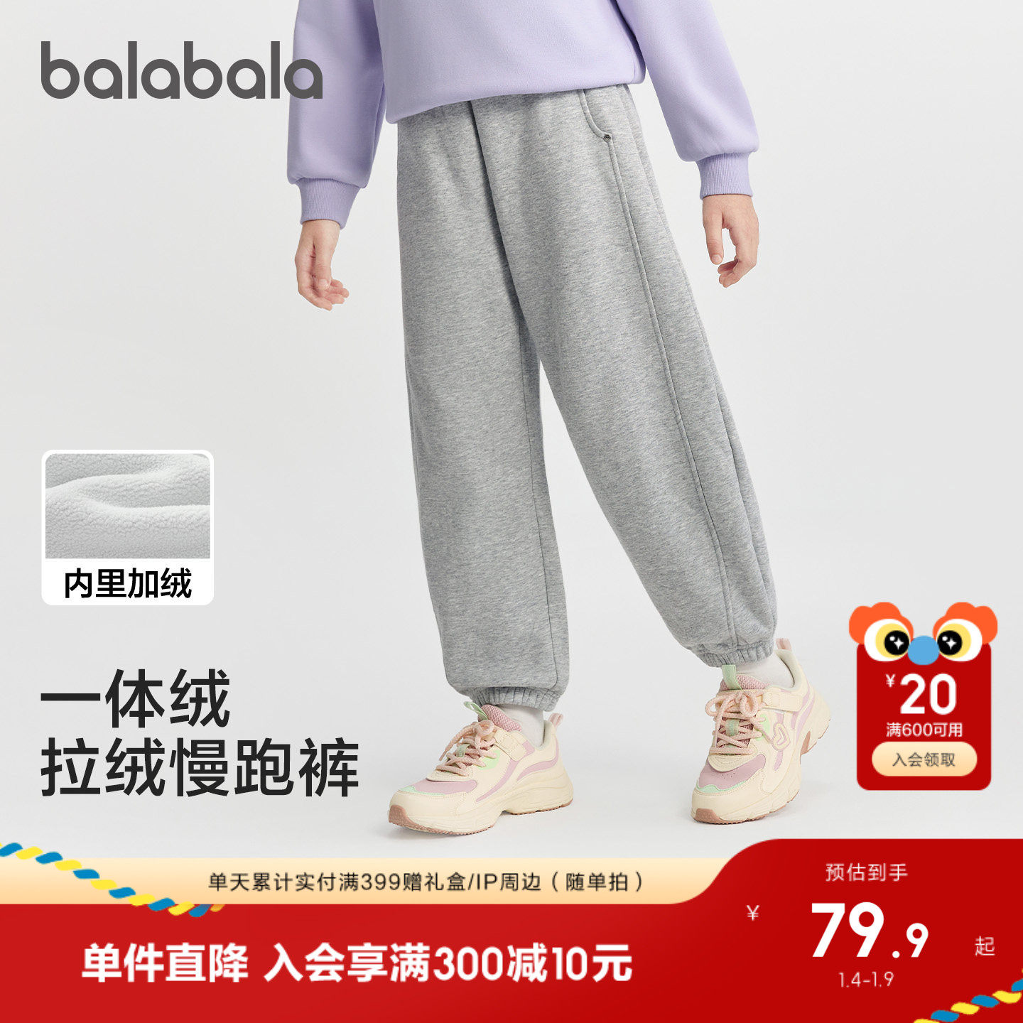 巴拉巴拉童装儿童加绒裤子女童运动长裤2025冬装新款一体绒保暖潮