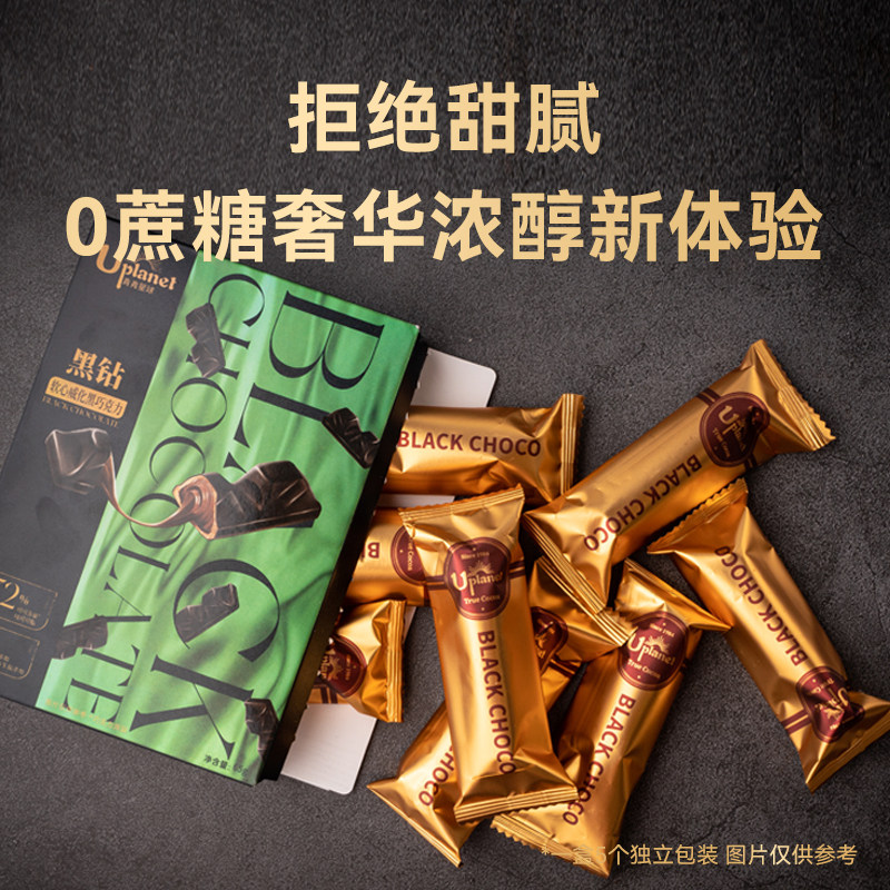 Uplanet青青星球0蔗糖软心黑巧克力纯可可脂健康零食国货不甜盒装