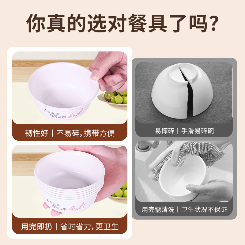 稻壳一次性碗食品家用饭碗厚碗筷餐具耐高温塑料野餐结婚用餐小