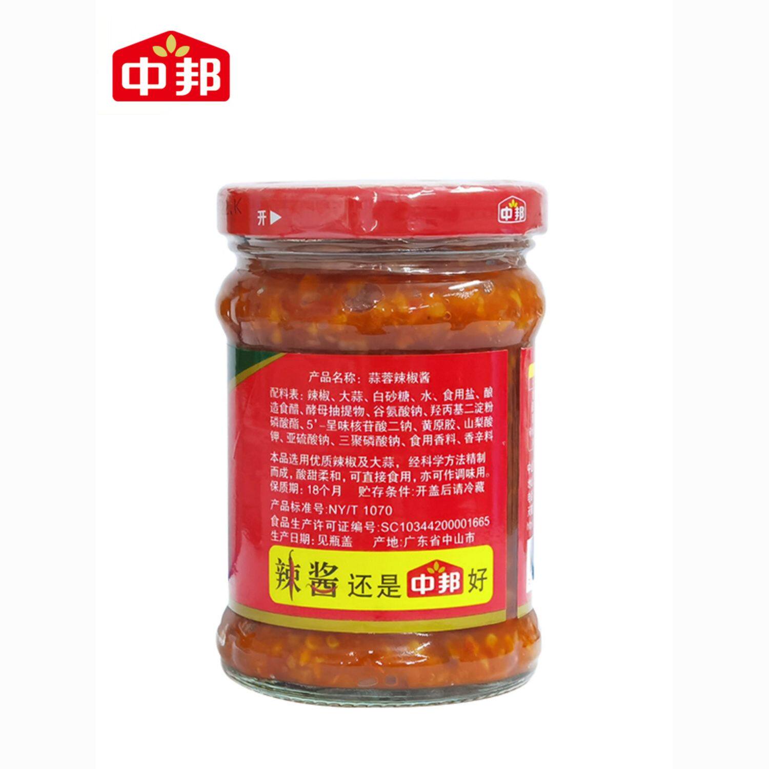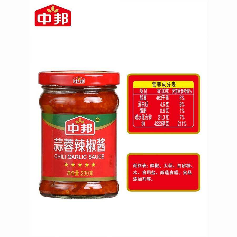 中邦蒜蓉辣椒酱家用拌饭火锅蘸料牛杂肠粉微辣调料辣酱230g瓶装组