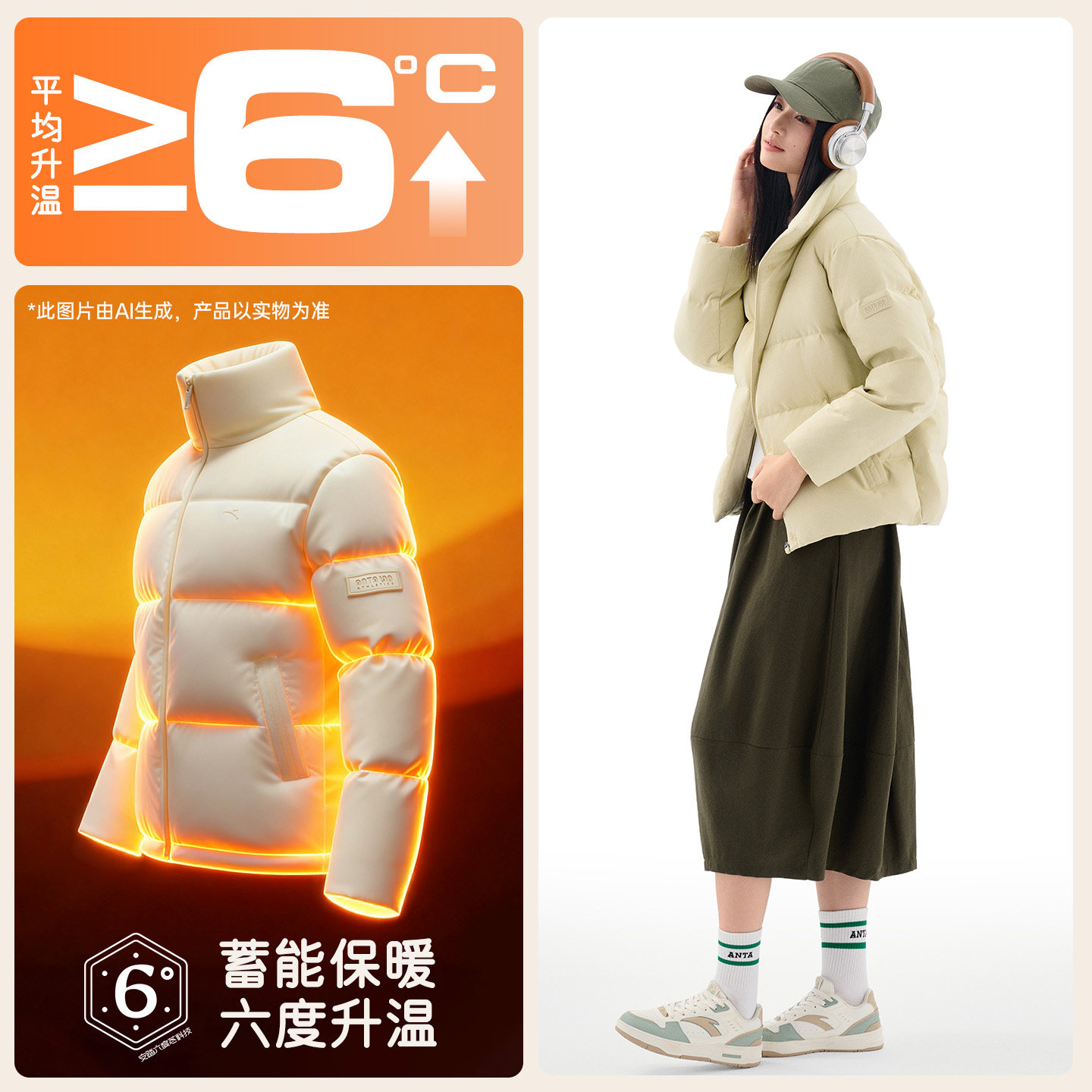 安踏羽绒服女装冬季新款立领短款加厚棉服官方正品外套女款