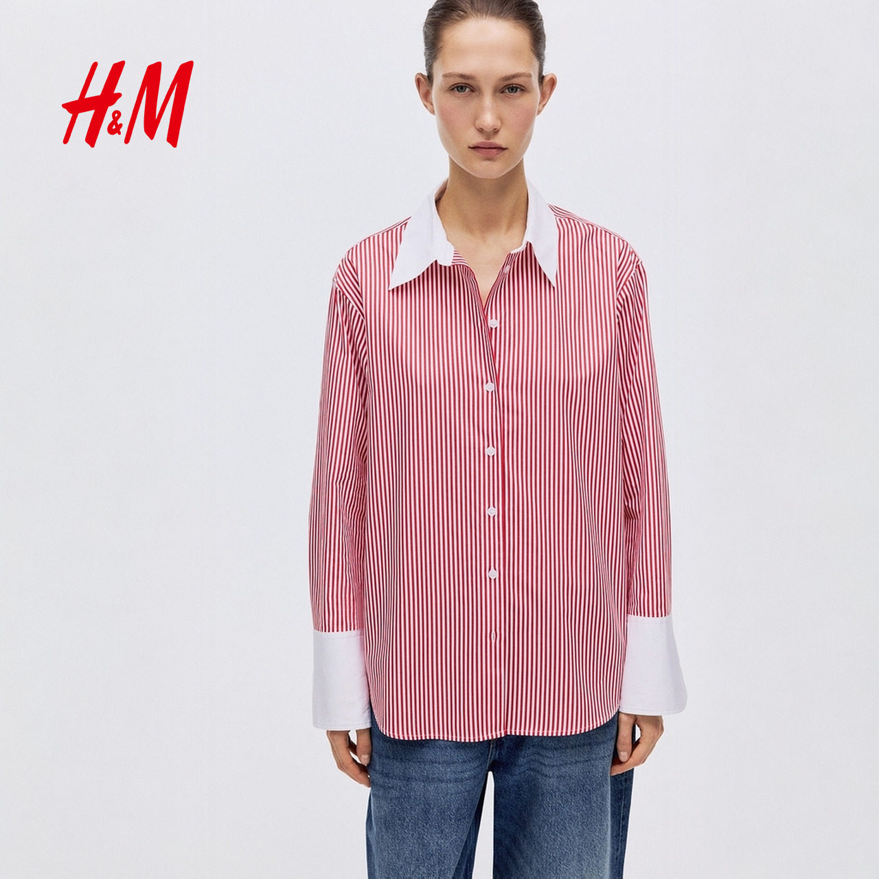 HM女装衬衫2026春季新款高智感衬衫棉府绸衬衫潮流上衣衫1322417