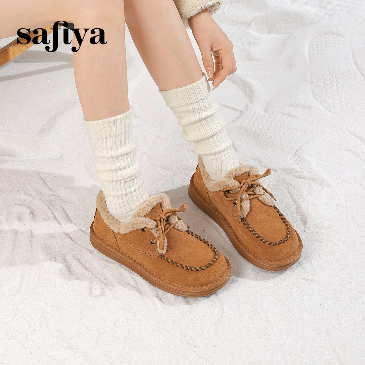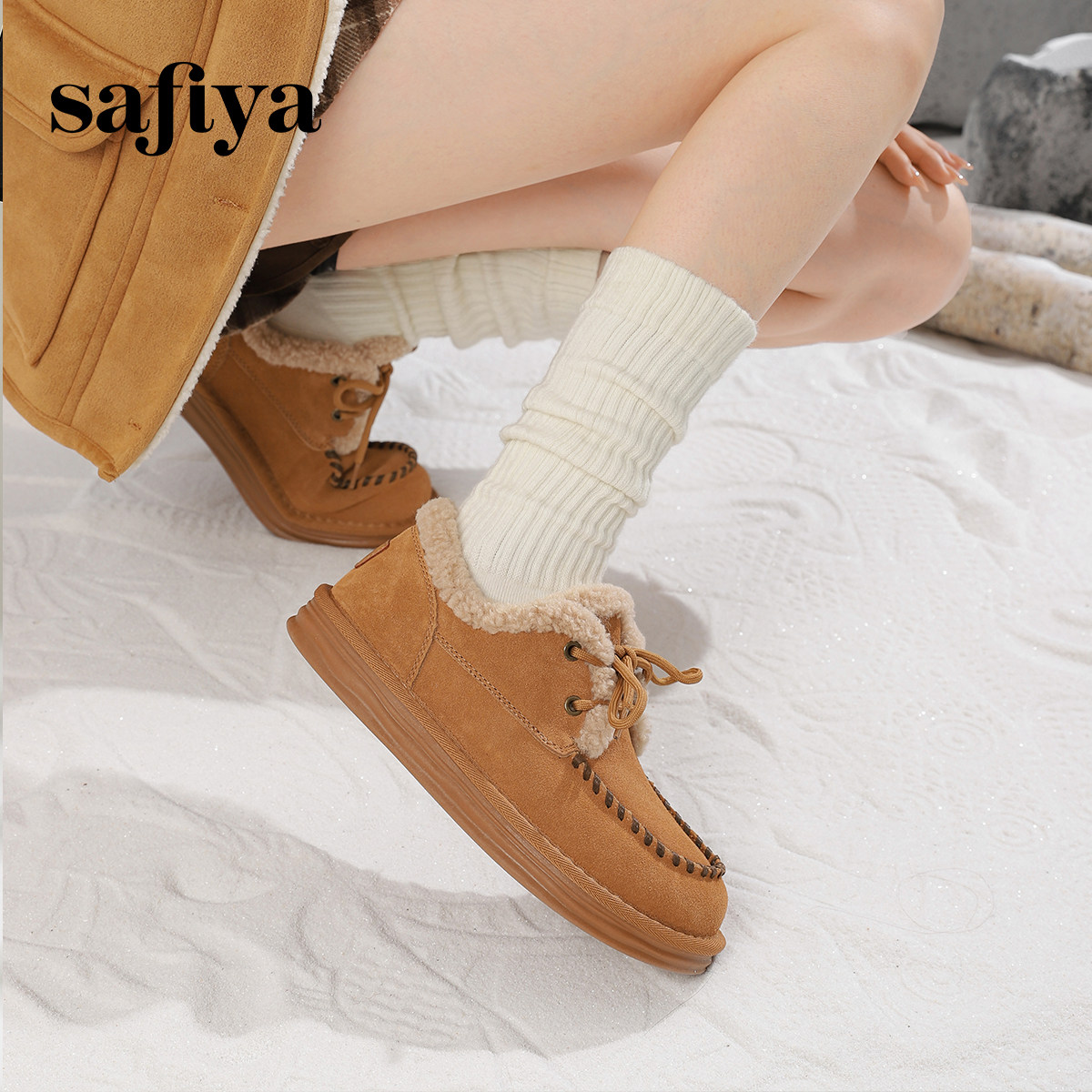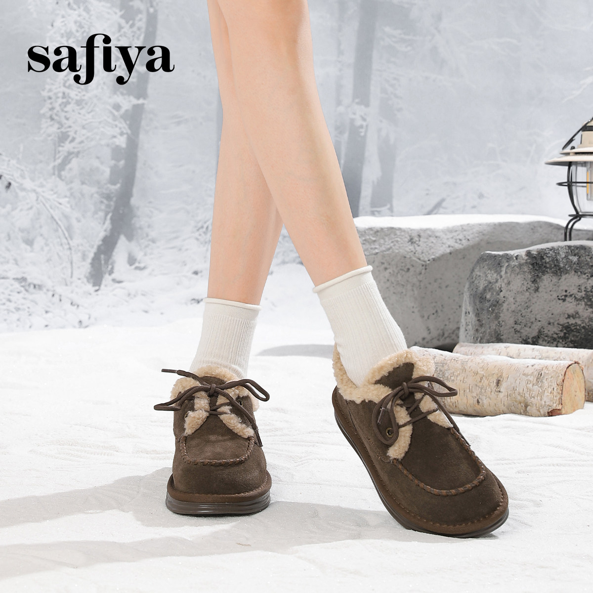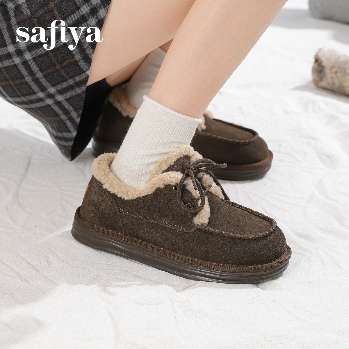 Safiya/索菲娅冬百搭圆头系带加绒棉鞋保暖外穿羊羔毛舒适雪地靴