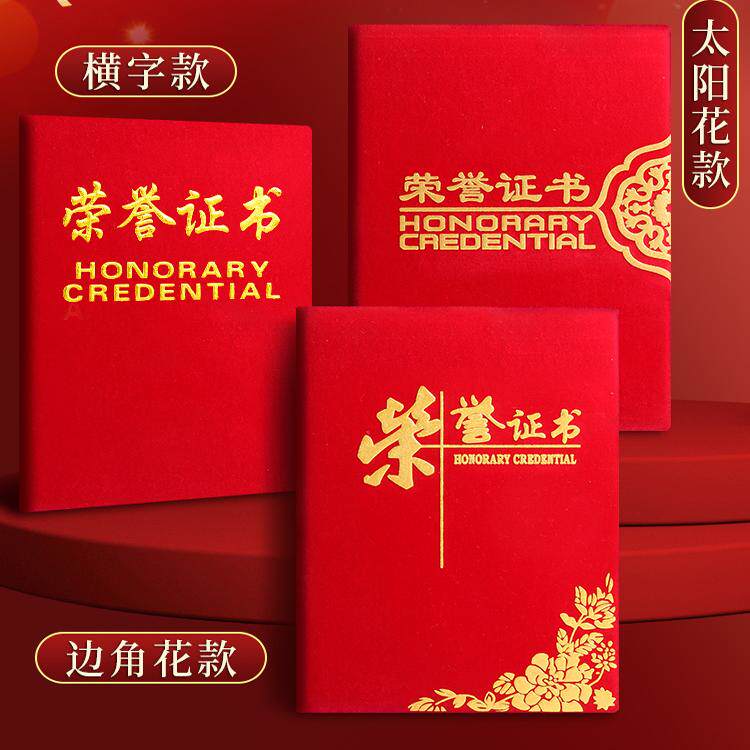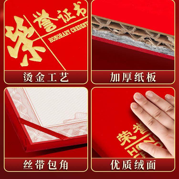 绒面荣誉证书外壳奖状纸a4可打印空白定制定做内芯打印模板内页保护套封套皮壳子优秀员工奖状2026新款证件书